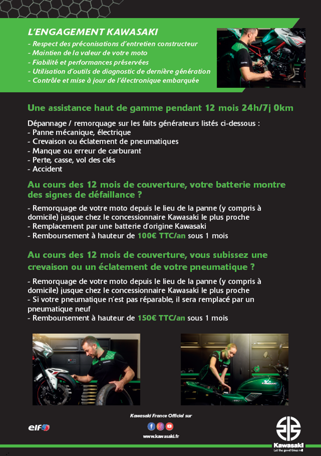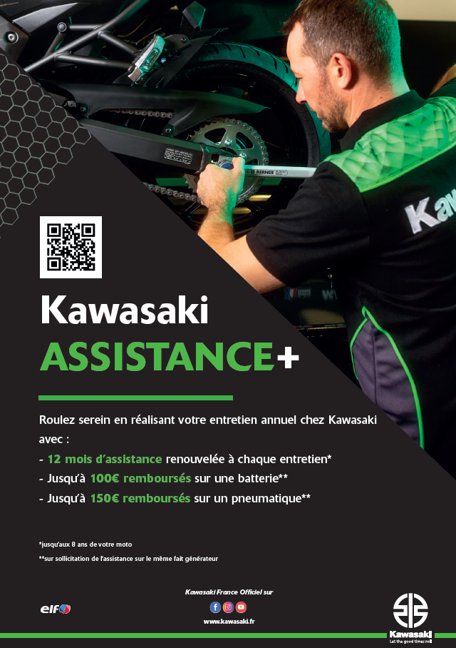 12 mois d'assistance renouvelée à chaque entretien (jusqu'aux 8 ans de votre moto)